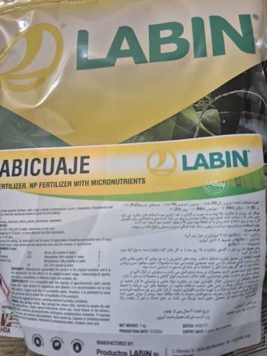 ▪️برند: لابین (LABIN) اسپانیا ▪️حجم: ۱ کیلوگرم ▪️نوع محصول: کود تخصصی پودری (محلول در آب) جهت تحریک و ترویج گلدهی، افزایش تشکیل میوه و تنظیم میوه، حاوی ترکیب متعادلی از عناصر فسفر، بور، مولیبدن، روی و منگنز که توسط شرکت معتبر لابین اسپانیا تولید شده است. ▪️مناسب برای: تمامی محصولات کشاورزی از جمله باغات میوه (دانه‌دار و هسته‌دار)، محصولات گلخانه‌ای (فلفل دلمه‌ای، خیار، گوجه‌فرنگی، توت‌فرنگی)، سبزی و صیفی‌جات جالیزی و گیاهان زراعی.